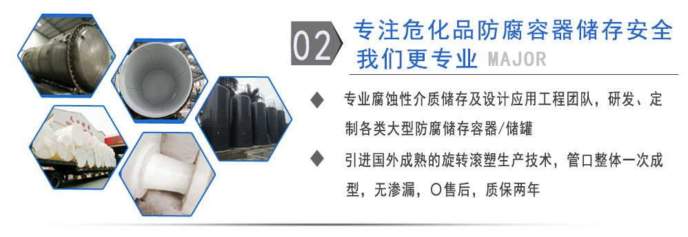 公司有鋼襯塑PE/PO、PE全塑、碳鋼、不銹鋼四大系列100多個品種,專注于常壓儲存容器生產(chǎn),其產(chǎn)品包括鋼襯塑儲罐、管口一體成型PE儲罐、碳鋼儲罐、不銹鋼儲罐、反應(yīng)釜、攪拌罐、離子交換柱、鋼襯PE/PO儲罐、塑料儲罐、鹽酸儲罐、硫酸儲罐等等。更大限度滿足廣大客戶的各種需求,同時可以根據(jù)客戶的需要加工定制各種防腐設(shè)備。